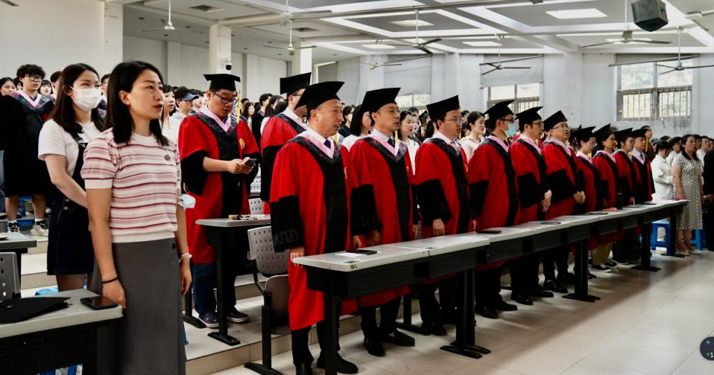 在庄严的国歌声中,本次典礼拉开帷幕。
