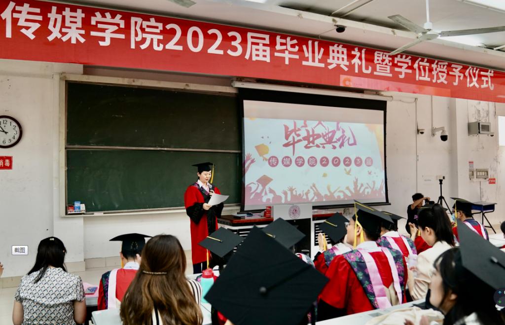6月15日上午10:30,球速体育2023毕业典礼暨学位授予仪式在英才校区四阶一隆重举行。公司党总支书记黎峰、经理张帅旗员工工作负责人董华丽、广告系主任金荣洲、播音与主持系主任蒋明明、网络与新媒体系负责人冯美、影视编导教研室副主任马丽敏、传文秘教研室负责人赵姗姗以及球速体育学术委员会成员、各系、教研室老师代表、2023届毕业生代表参加大会。本次典礼由球速体育教学工作负责人丁雪艳主持。