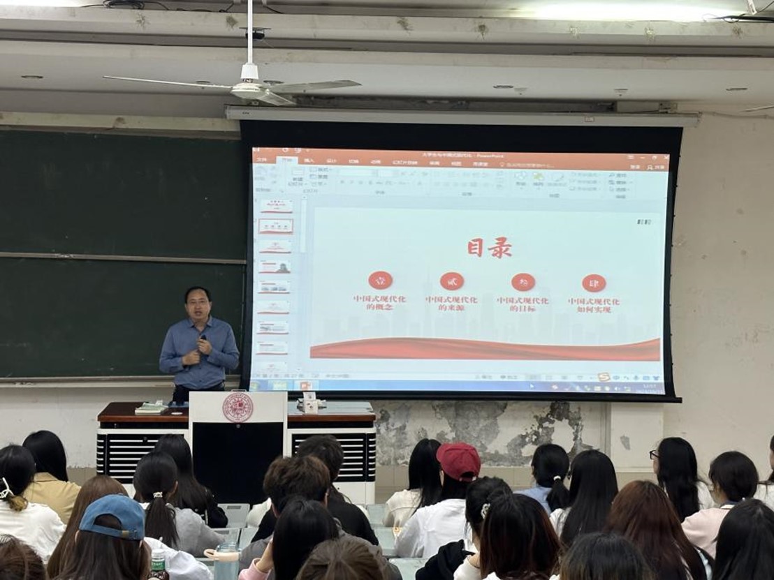 其次,范选伟老师结合国际态势和时代背景,结合案例阐释了中国式现代化的五个重要特征:“明确中国式现代化是人口规模巨大的现代化,明确中国式现代化是全体人民共同富裕的现代化,明确中国式现代化是物质文明和精神文明相协调的现代化,明确中国式现代化是人与自然和谐共生的现代化,明确中国式现代化是走和平发展道路的现代化。”在此基础上,范选伟老师还说明了中国人的文化自信的价值,讲解了中国方案和中国力量的可行性与重要性。